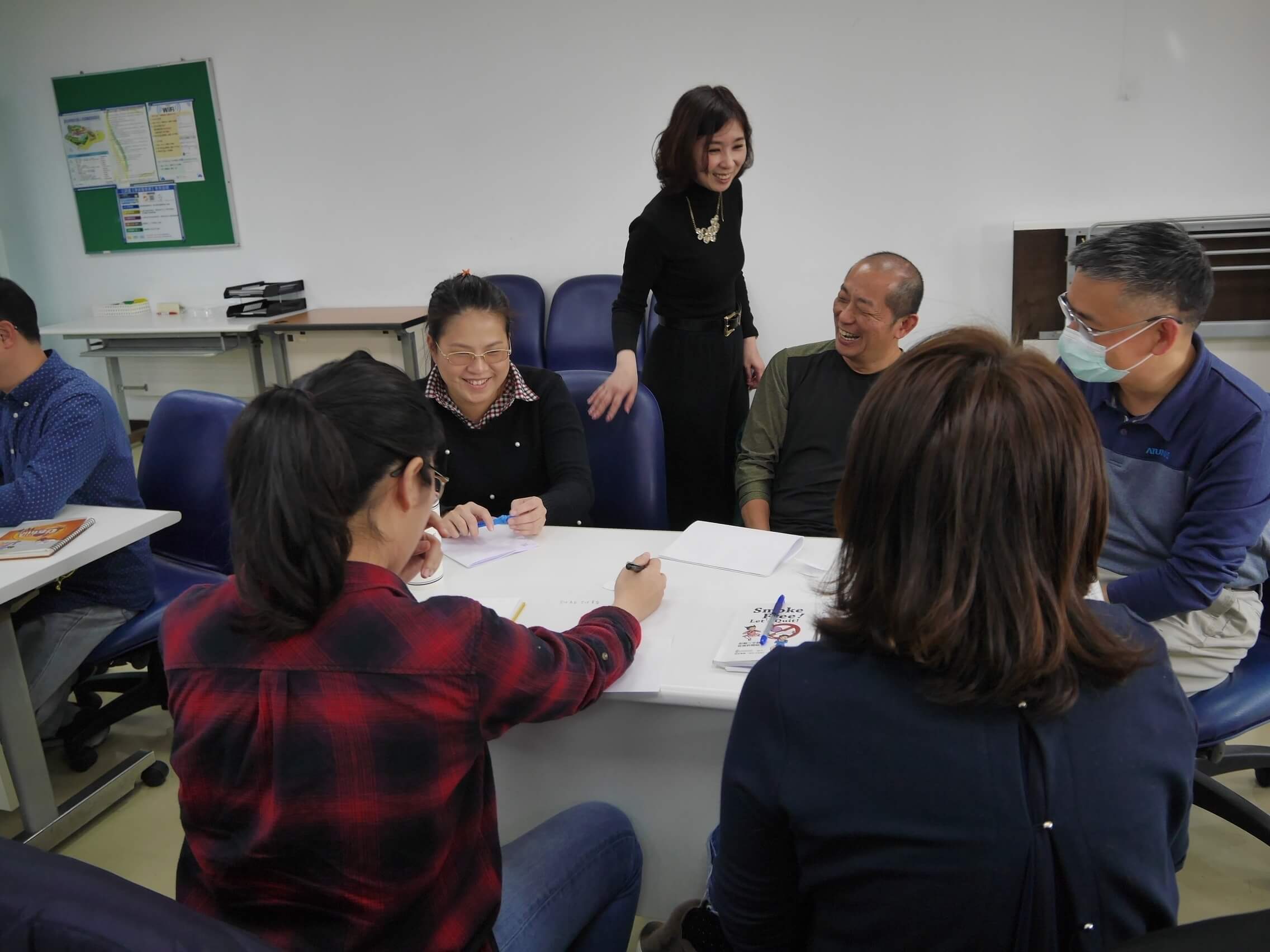最有趣的是,月琪秉持「做中學」的教學原則,讓學員們藉由實際演練更深刻地理解授課內容,因此除了大原則與經驗分享,還會不時點名同學表達及練習,並且在最後一天下午進行分組演練,由同學們主導演出主持實況劇,藉由扮演主持人、來賓、記者等角色來回顧所學,甚至還有兩組被賦予雙主持的功課挑戰。