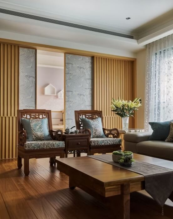 原始文章連結:見學館/境庭設計》以宮廷設計實踐木茶禪藝,跨越四個世代的全齡化住宅