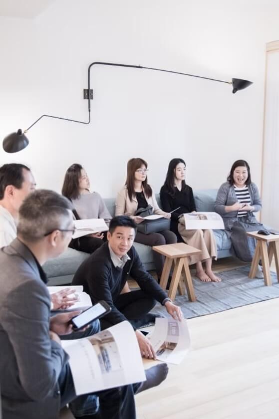 許多日本建築師在作品完工後,會對外舉辦見學分享會、與同業或建築系學生進行交流,仿效此種教學相長、相互提升的模式,專精清美學風格的「翎格設計」總監潘怡華,特地邀請設計同好參訪其最新設計案,欲以設計作品為媒介,分享清美學簡單而不簡陋、優雅而不庸俗的設計思維。
