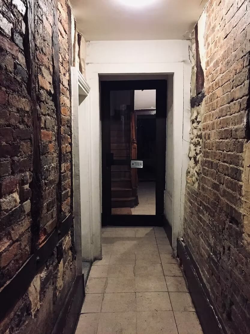 公寓大門就在拉麵店旁邊,打開房子的大門,要先穿過細長的走道,而且這個小巷很特別喔!兩邊可以摸到粗粗的石塊,一開始還納悶,燈開了才發現原來那是建築外牆誒!你可以想像這個走道是左右兩邊房子的中間巷道,我很喜歡這個小巷道,每次回家都像是在穿越時光隧道啊!大門居然是開在巷口,把巷弄變成公寓走道的概念。