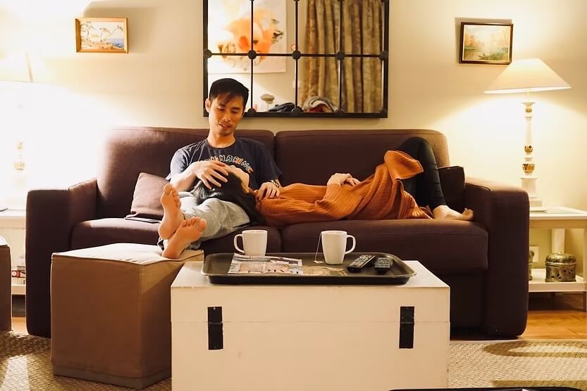 打開家門,映入眼簾是一個黃色空間,這種黃是一種溫暖且迷濛的黃,顏色的堆疊除了來自房子裡的黃光,還有空間的顏色,櫥櫃是黃色的木頭、一張紅咖啡的沙發、曝舊褪色的金黃色窗簾,整個空間帶著王家衛導演的迷茫色彩。