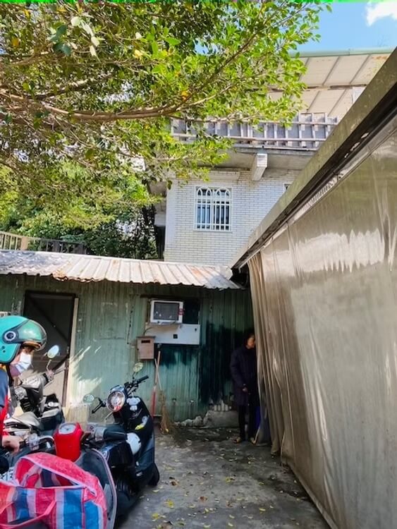 在半山腰的建築,腹地挺大的,台灣的空地一不小心就會變成私人庭院、停車場或另類居住空間。我後來回家用估狗地圖查,公寓的建築本身滿美的誒!增建的兩間鐵皮屋,也各自成為一間住屋。
