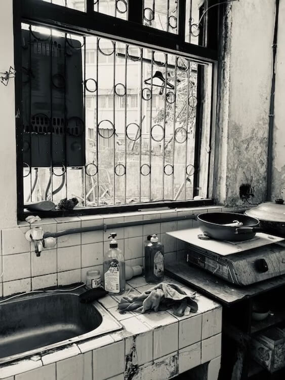 那天上午,我好像穿梭在不同時空,明明是同一條街,相似的大門與公寓外觀,大門內的居住景象卻截然不同。這一趟送物資之旅,去了好多位獨居老人的家,他們住的空間,只有「神奇」二字可以形容,很神奇的居住空間。
