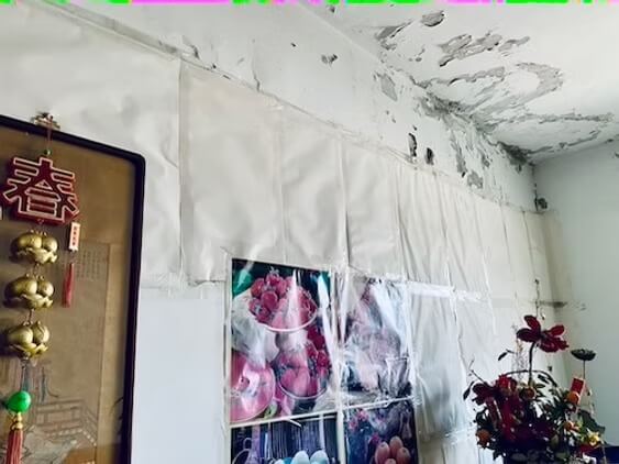 角落也被搭上鐵皮屋頂、開口蓋上防水透明塑膠布,變成公寓大廳跟公用客廳!
