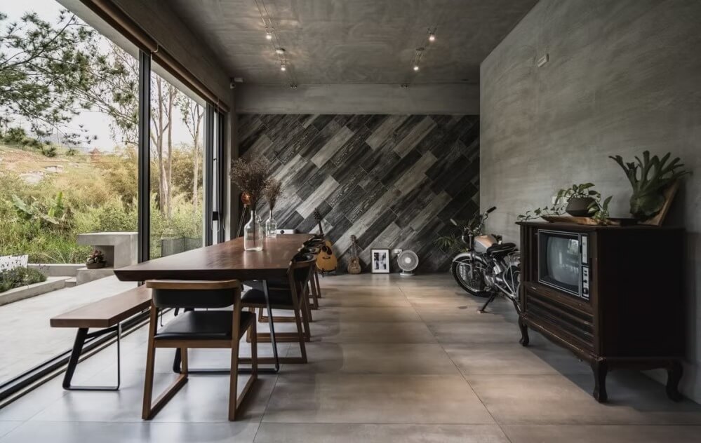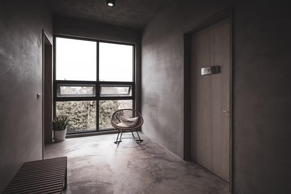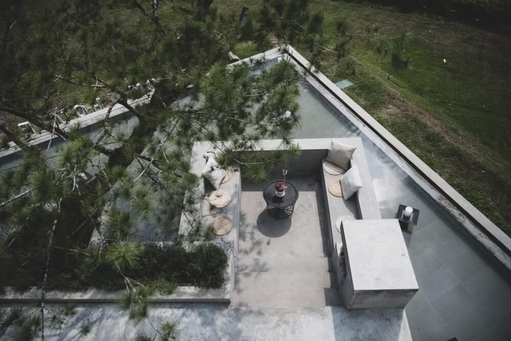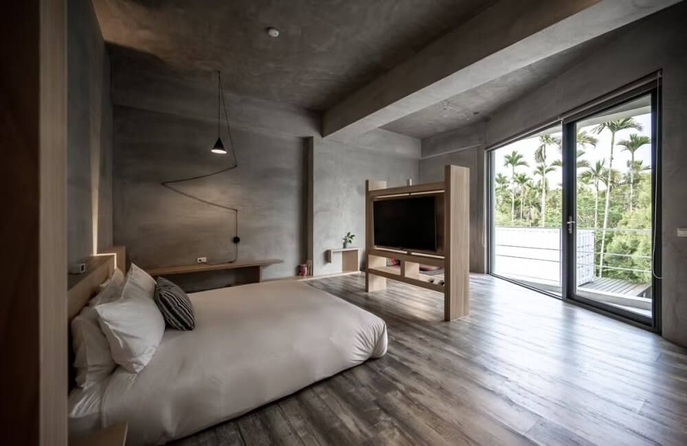 當初在設計房間時,沒有事先設定給誰,完全依照建築的結構形體劃分房間的位置形狀,內裝沒有納入太多室內設計,為的是用建材本身的質地映照房子周圍的環境,降低視覺干擾好讓視線與綠樹、池水、草地、碎石接引,Jim説如果要選房間,他一定會選Fari,Fari是風,因為這間房的空氣對流最好,有面對山麓的窗也連接房子後方的樹群,「兩邊的景都可以看得到,還能感受到風,是我最喜歡的房間。」Jim説。