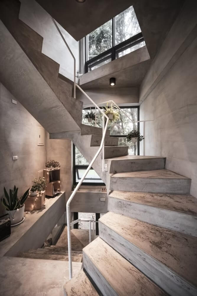 要說回應老家,「樓梯是這間房子的中軸,每層樓圍繞著樓梯一層一層堆疊起來、又往外擴散,就像我們家的孩子都在世界各地,繫住我們這群孩子的軸心就是樓梯,最後還是會回到家來。」Jim告訴我們,這裡也是他最喜歡坐著、看風景的地方。