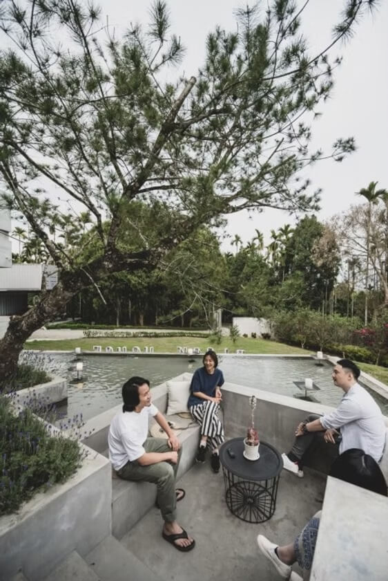 ▲那天我們選在水池旁的露台採訪,一邊聊一邊感受環境,抬頭就能欣賞建築的純淨力道。