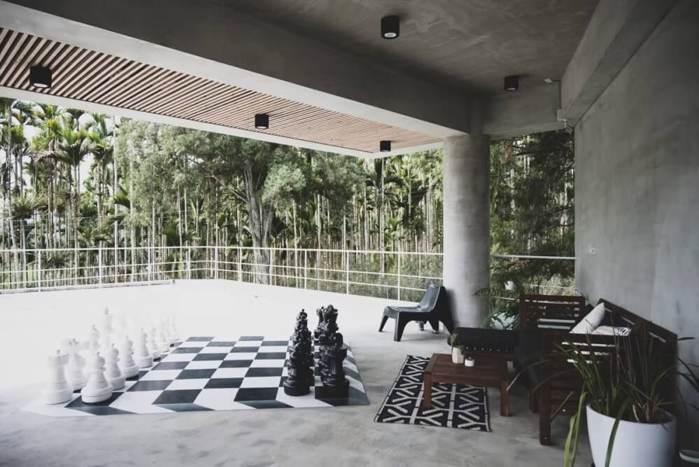 ▲房子也植入兩人的澳洲回憶,以前在澳洲經常會去公園下西洋棋,特別找了藝術家朋友在二樓露台繪製3D棋盤,也讓住客參與他們過去在澳洲的生活片段。