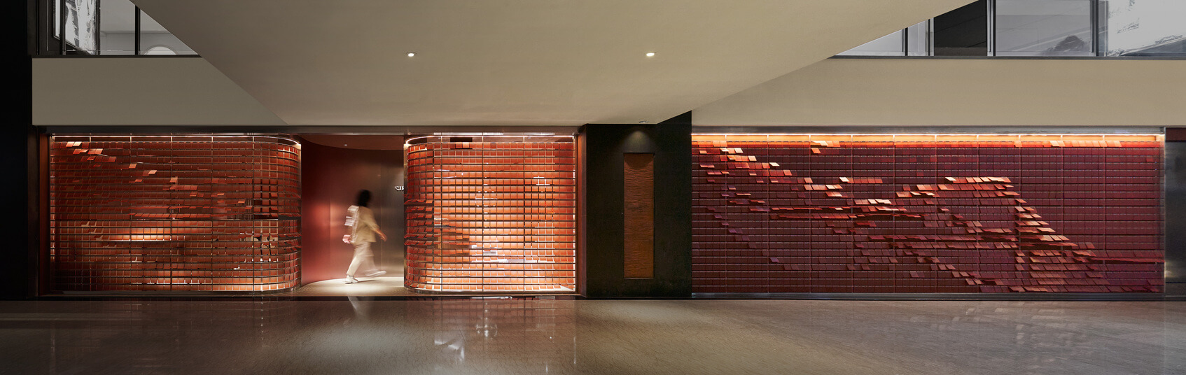 為回應亞洲時尚菜的品牌設定,以當代材料為主要媒材,並挑戰金屬結構上更細緻的焊接工藝、金屬與顏色上的漸層製作。以圖型跟色彩帶出象徵意涵,間接表現空間與華人文化的連結性,開展五感體驗。顛覆華人餐廳=東方設計的絕對,企圖在傳統的亞洲格調與新時代的現代感找出平衡。